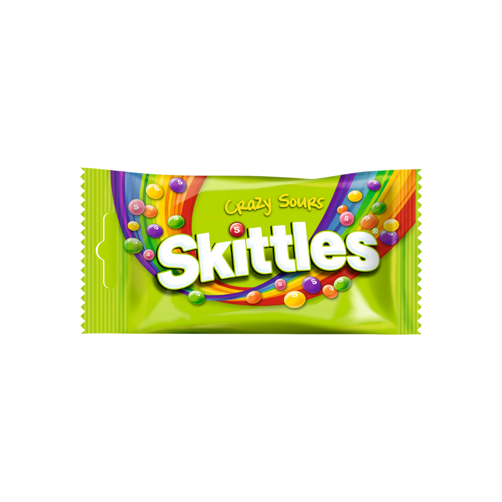Skittles Crazy Sours bieten fruchtig-sauren Kauspaß in fünf intensiven Sorten. Die knackige Hülle und das weiche Innere machen jeden Bissen zum Erlebnis – ideal für alle, die es bunt und sauer lieben. Perfekt zum Teilen, Snacken oder als farbenfrohes Highlight für zwischendurch.